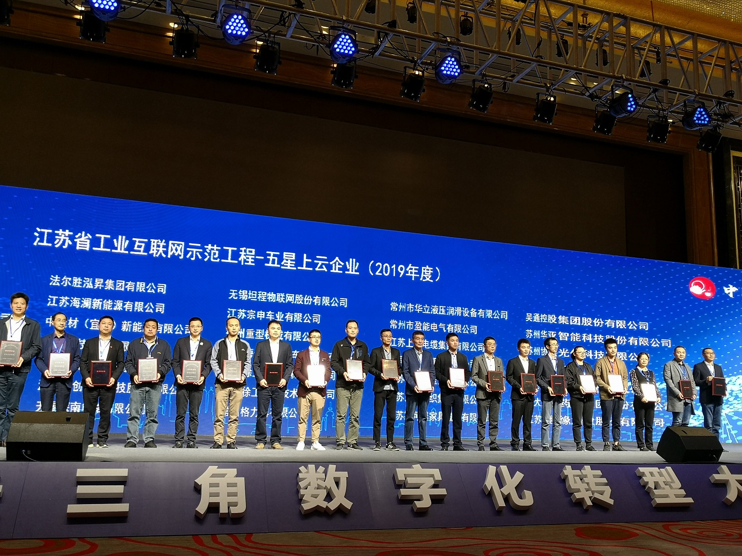 会上,对省内五星上云企业、工业互联网标杆工厂、两化融合优秀服务机构、优秀合作伙伴等进行表彰。尊龙凯时集团股份有限公司荣获“江苏省工业互联网示范工程五星上云企业”称号,接受表彰。
