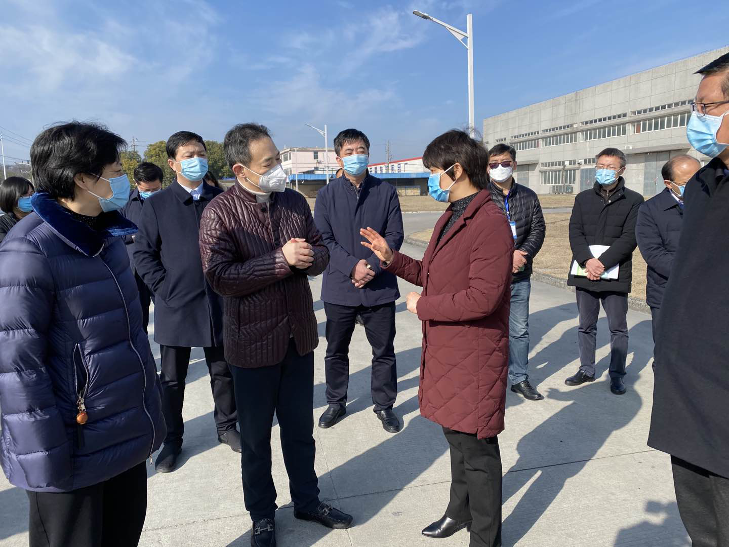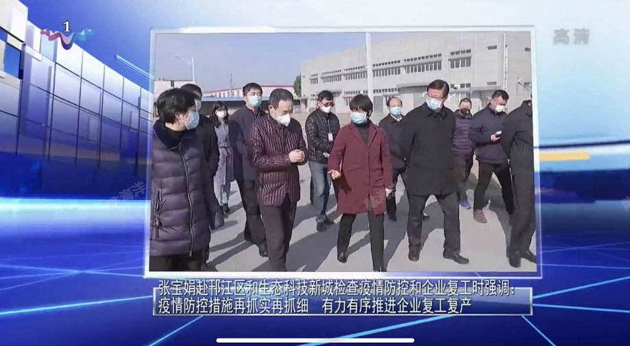 2020年2月10日,扬州市市长张宝娟一行来我司检查新型冠状病毒肺炎防控工作,公司董事长张文生向市领导详细汇报了有关疫情防控方案、应急预案及防疫物资的筹备情况,并陪同市领导一行察看了公司员工食堂、职工宿舍等地域的消毒、隔离设施等落实情况。张市长对我司疫情管控工作表示了充分肯定,并要求我司对条件具备的生产线尽快恢复生产。生态科技新城与杭集镇党政主要领导一同参加了检查。