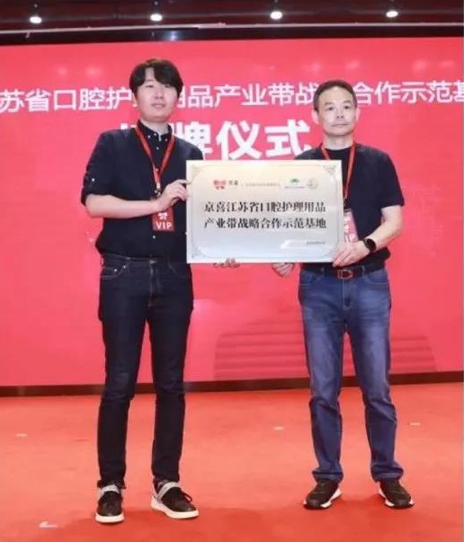 活动现场,双方签署《京喜——扬州杭集产业带战略合作协议》,并举行了“京喜江苏省口腔护理用品产业带战略合作示范基地”授牌仪式。